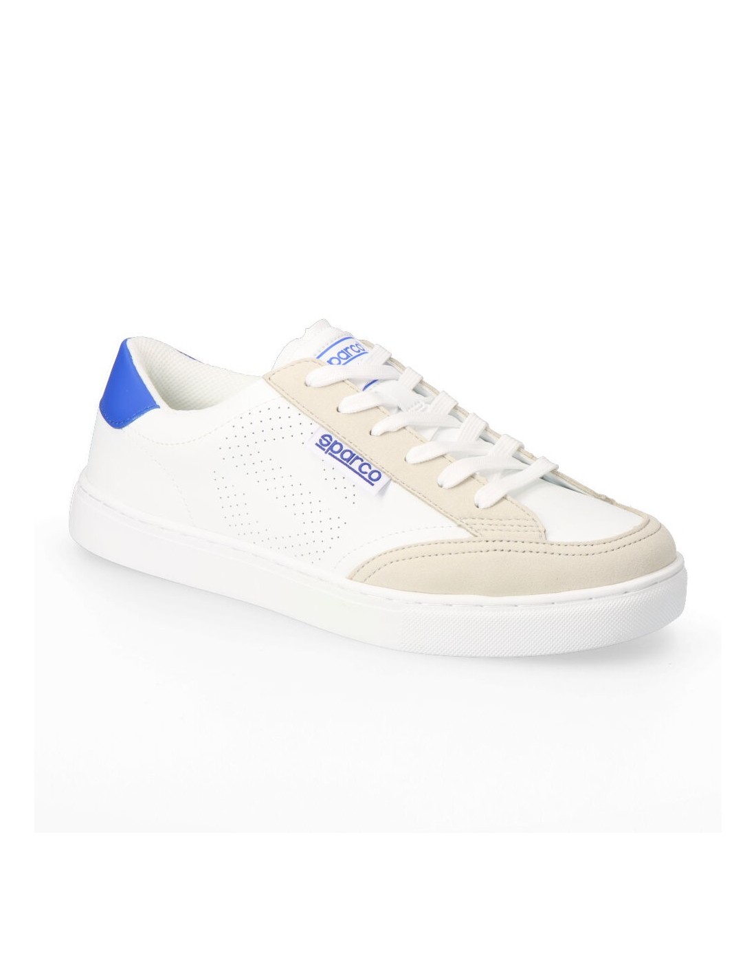 SparcoCALZADO DEPORTIVO SNEAKERS S-TIME BLANCAS/AZULES. TALLA 43, EN PIEL SINTÉTICA PERFORADA. SUELA CASUAL DE GOMA. ZONA TOBILLO ACOLCHADO.ESTE CALZADO NO ESTÁ DISEÑADO NI CERTIFICADO PARA SER UTILIZADO COMO CALZADO DE SEGURIDAD