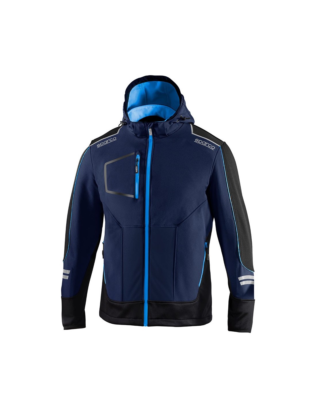 SparcoCHAQUETA TÉCNICA SOFTSHELL TECH, YORK, AZUL MARINO/AZUL YORK T2 - M; INSERCIONES CON REFUERZOS EN ZONAS DE TENSIÓN, ELEMENTOS REFLECTANTES, CREMALLERAS ESTANCAS, MULTIBOLSILLOS, CAPUCHA DESMONTABLE, INTERIOR CON FORRO POLAR 100% POLIÉSTER, MATERIAL EXTERIOR: 1- 93% POLIÉSTER 7% ELASTANO, 2- 90% NYLON 10% ELASTANO