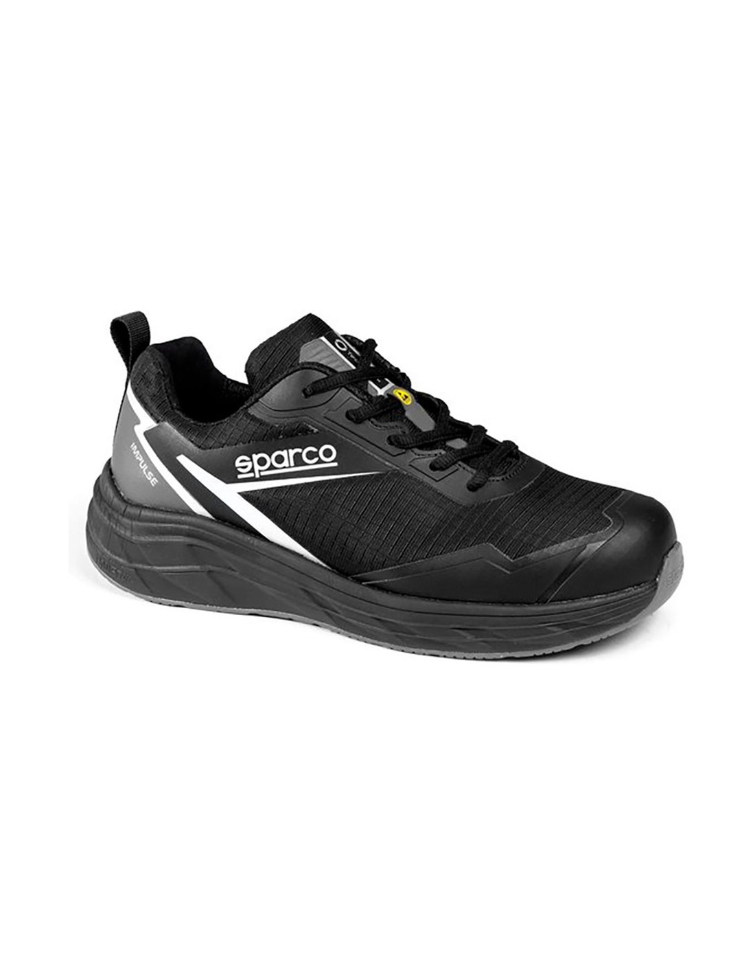 SparcoZapato Deportivo De Seguridad Tipo Running Impulse Chris. Talla 44. Color Negro Con Detalles En Gris. Certificación Esd S3S Sr Fo Hro. Detalles En 3D. Tejido Rip Stop Resistente Al Agua. Suela Intermedia En Eva Super Confort. Suela Inferior En Goma Nitrílica. Segundo Par De Cordones De Combinación De Color Incluído