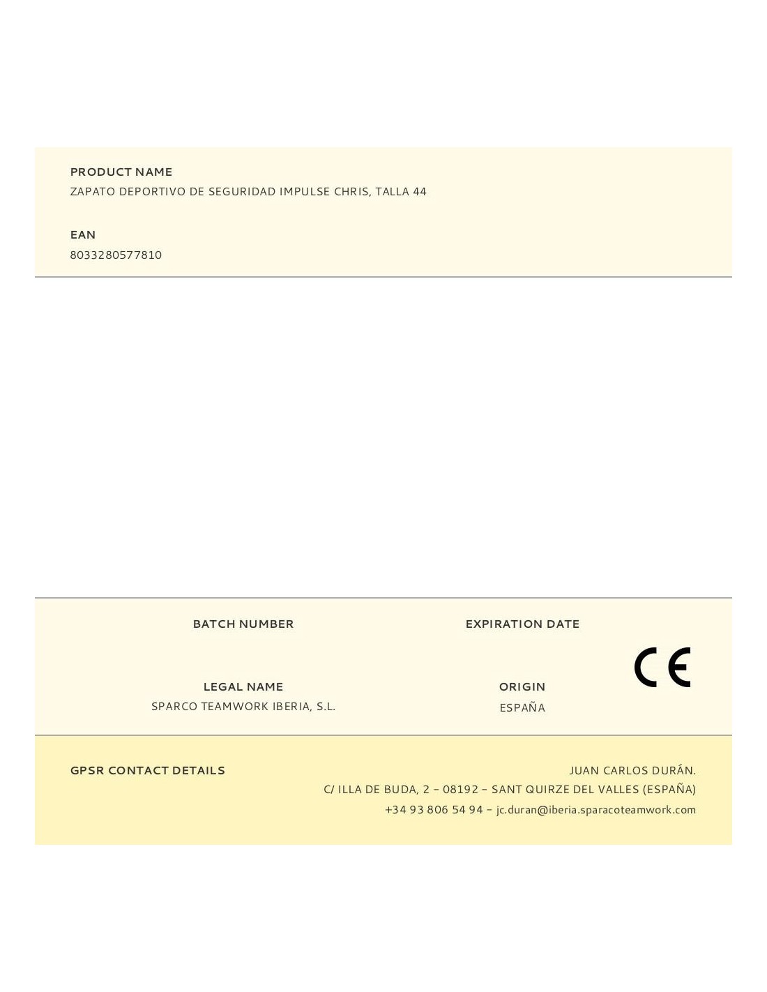 Zapato Deportivo De Seguridad Impulse Chris, Talla 45 Sparco