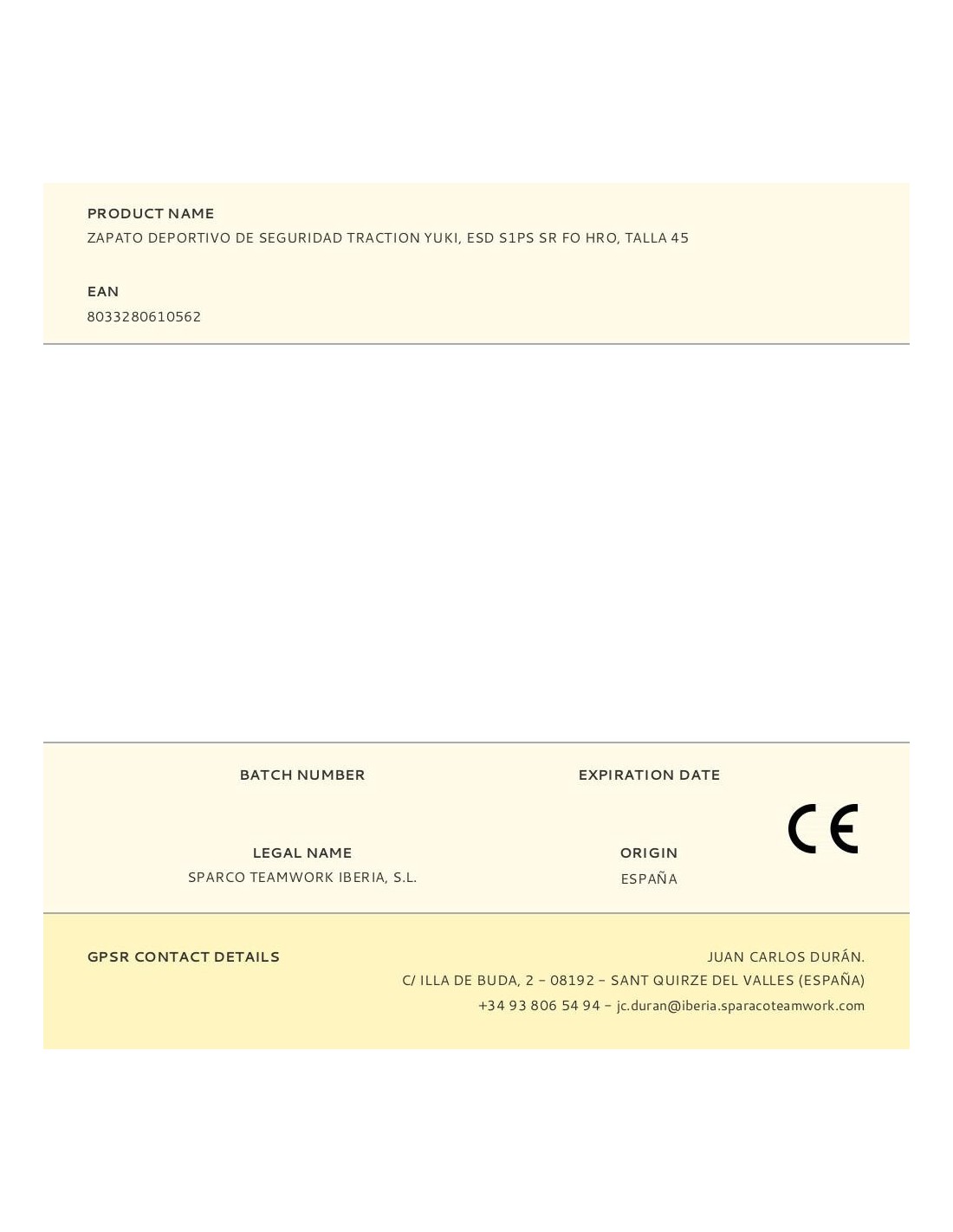 Zapato Deportivo De Seguridad Traction Yuki, Esd S1Ps Sr Fo Hro, Talla 46 Sparco