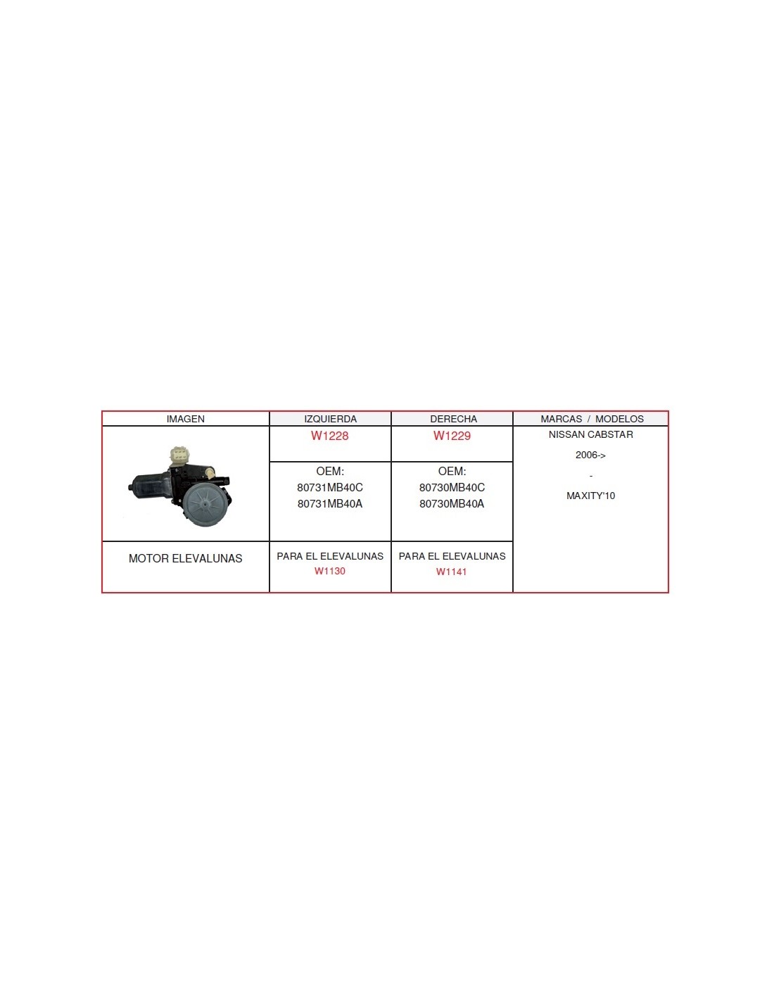 MOTOR ELEVALUNA RH NISSAN CABSTAR