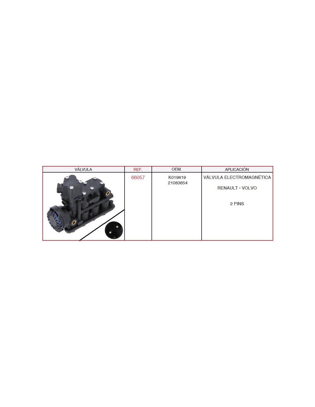 Válvula electromagnética (solenoide) original para vehículos industriales RVI – Volvo.