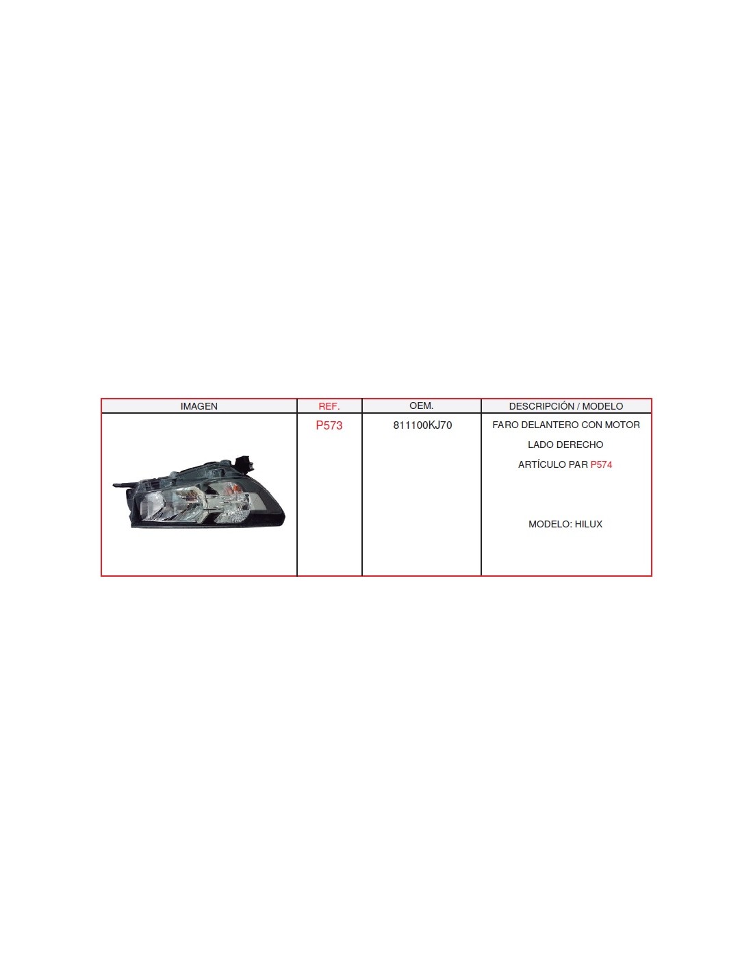 FARO DEL. DCHO. CON MOTOR TOYOTA HILUX CASALS