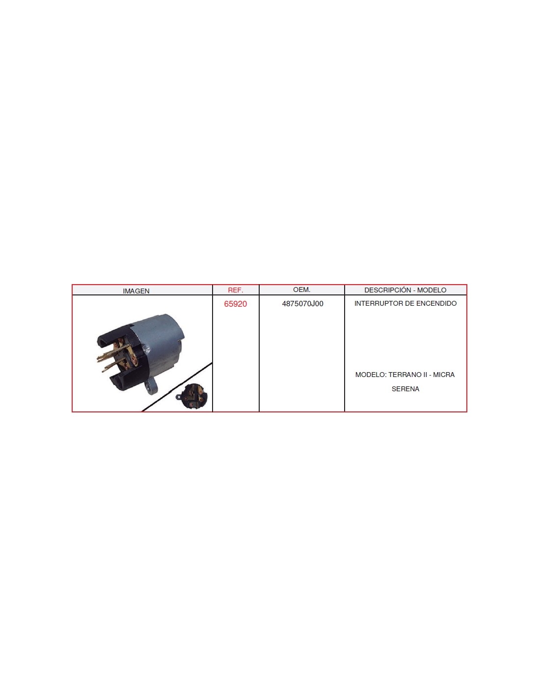 INTERRUPTOR DE ENCENDIDO NISSAN TERRANO II MICRA SERENA FORD MAVERICK