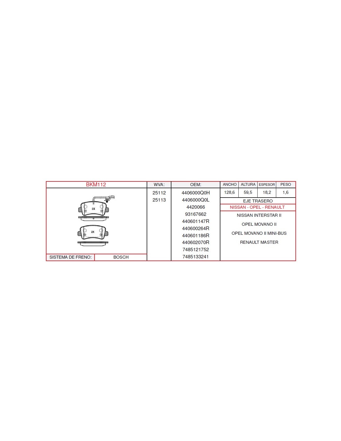 Kit Pastillas De Freno Wva.25112-25113 Marca Casals
