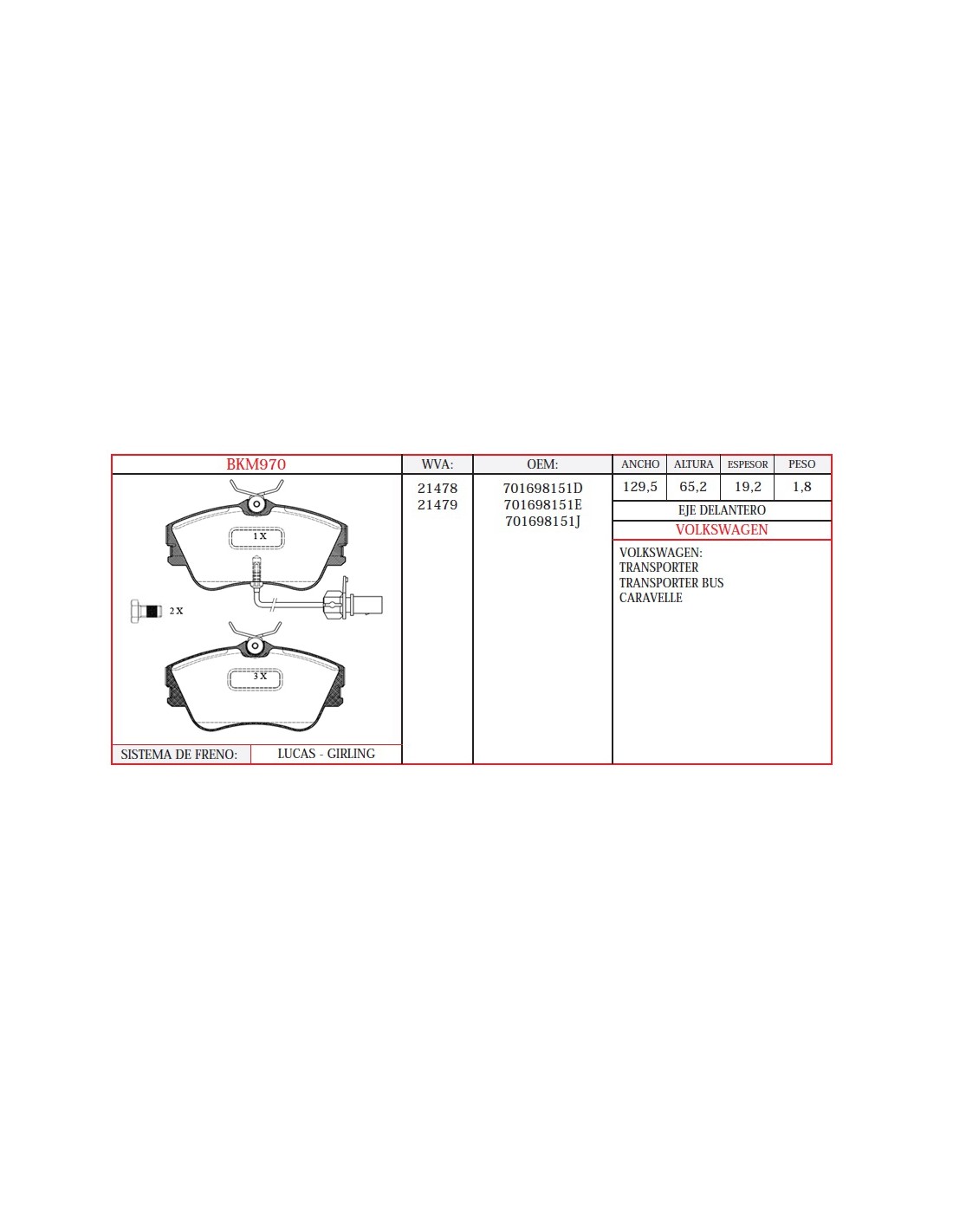| VW | 701698151E |