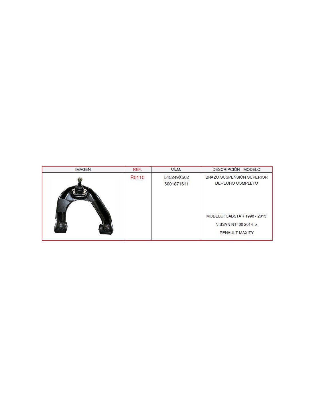 Brazo Suspension Superior Completo Rh Marca Casals