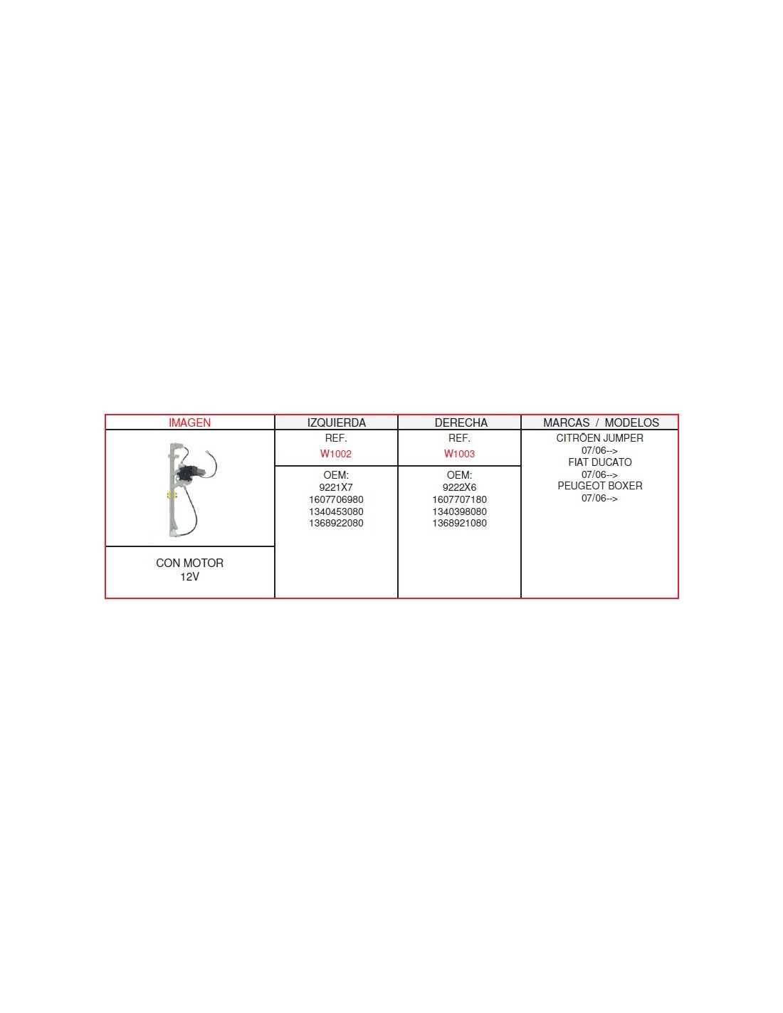 ELEVALUNA DCH.CITROEN-FIAT-PEUGEOT CON MOTOR 2 PINS Marca Casals