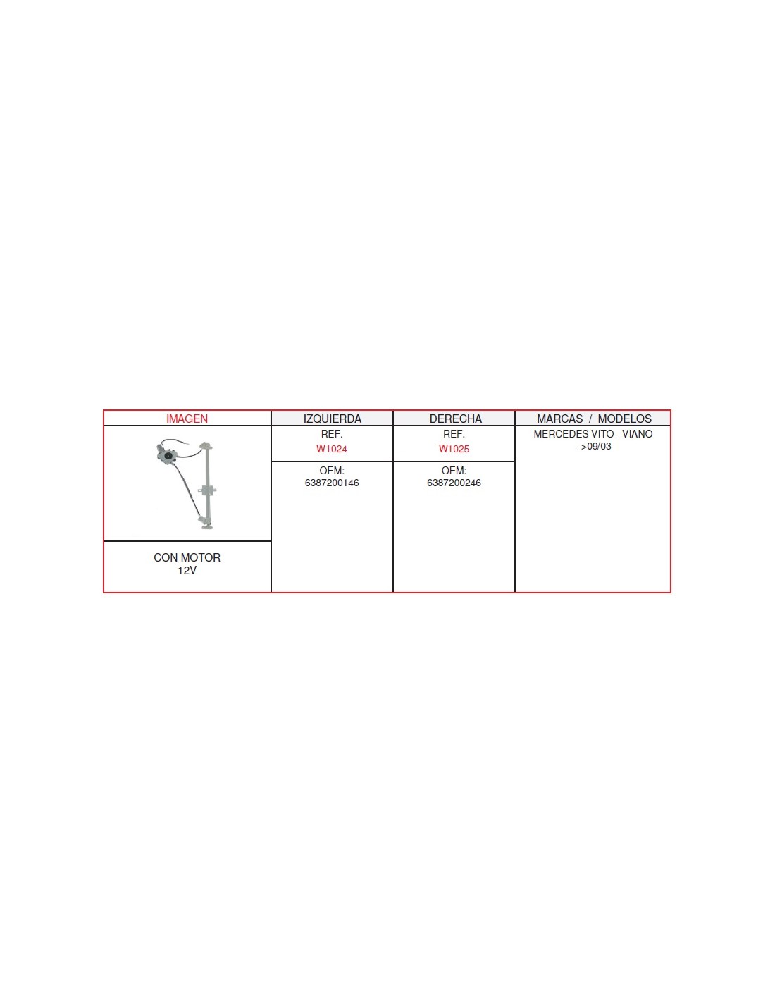 ELEVALUNA IZQ.MERCEDES VITO-VIANO CON MOTOR 2 PINS Marca Casals