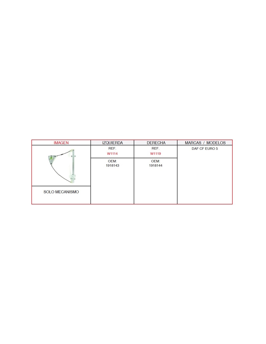 ELEVALUNA DAF IZQUIERDO SIN MOTOR Marca Casals