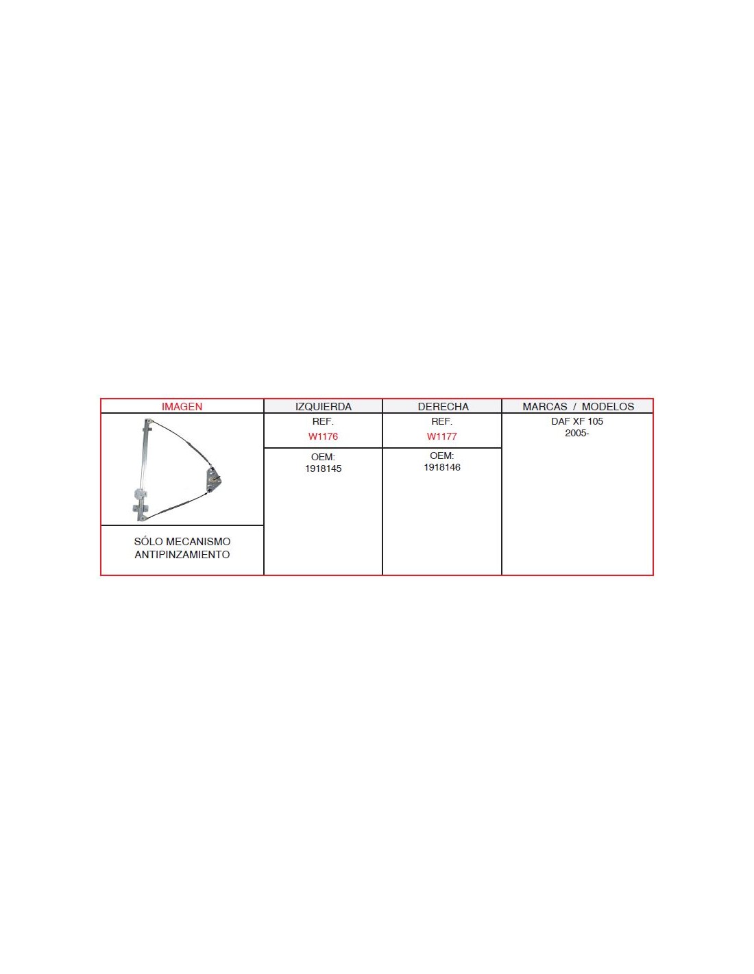 ELEVALUNA DAF XF105 SIN MOTOR IZQUIERDO Marca Casals