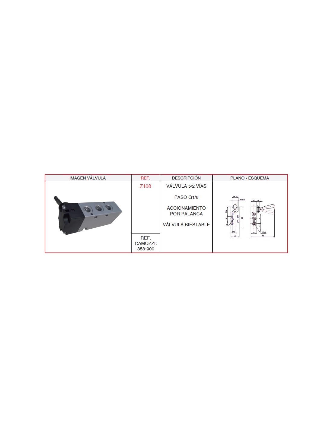 Valvula 5/2 G1/8 Acc.Por Palanca Marca Casals
