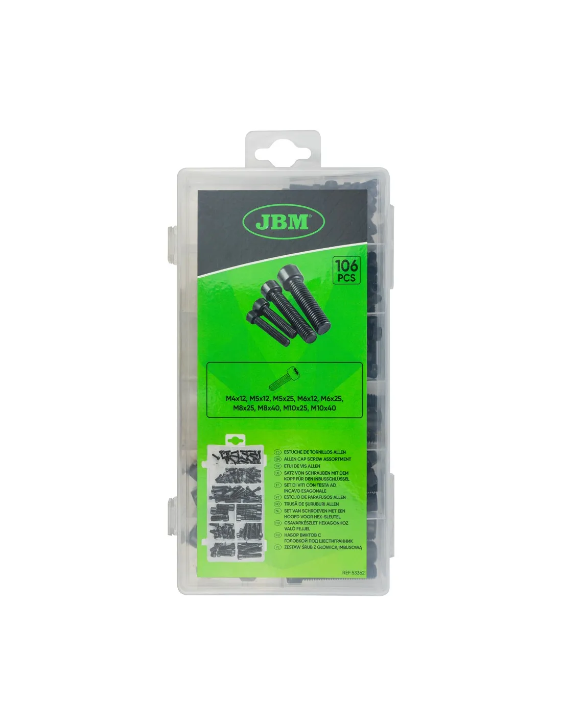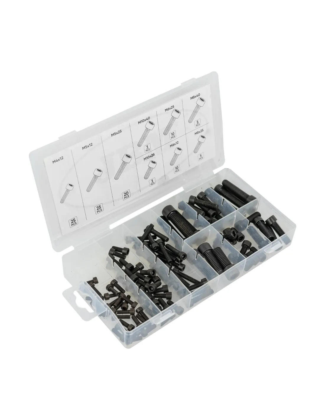 Estuche de 106 tornillos allen.
