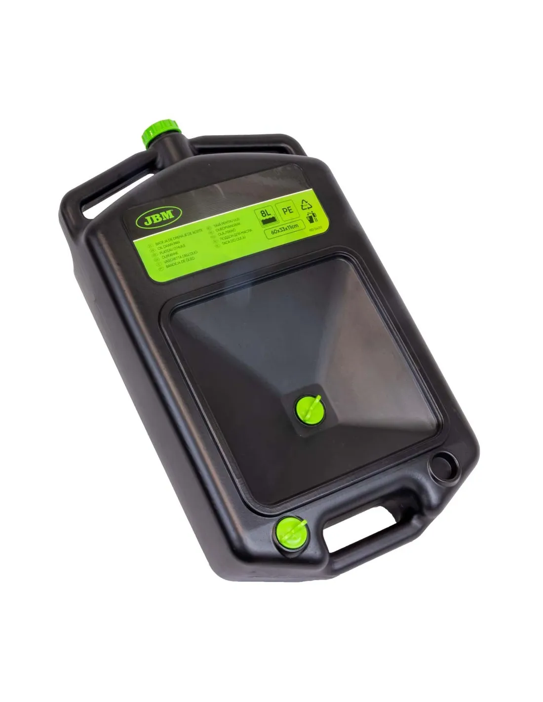 La bandeja de drenaje de aceite tiene un gran embudo, y unas asas de gran tamaño para transportar fácilmente.