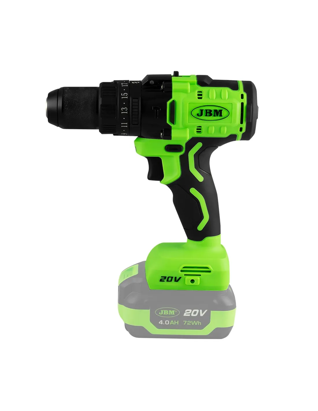 Cuenta con un anillo de conversión funcional que permite configurar la herramienta entre el modo taladro, taladro con impacto o el modo destornillador, un anillo de ajuste que permite elegir 23 niveles de torque diferentes, un selector de velocidad, y un portabrocas sin llave de ½” para una inserción y extracción rápida y eficaz de las brocas.